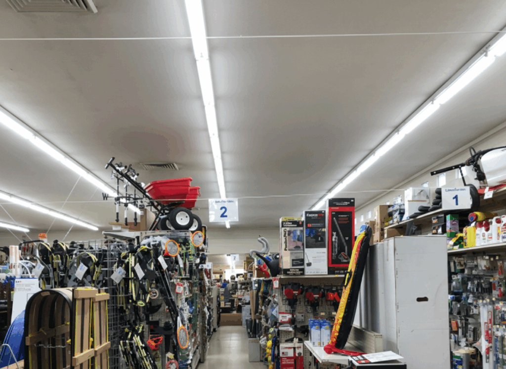 Smithfield Implement, a local True Value retailer, sought to modernize its lighting system to enhance the customer shopping experience and reduce high operational costs. The existing lighting system was inefficient, likely using older technology that consumed excessive energy and did not provide optimal light levels for a retail environment. The primary goal was a comprehensive LED retrofit to achieve substantial energy savings and improve the quality and brightness of the interior space.